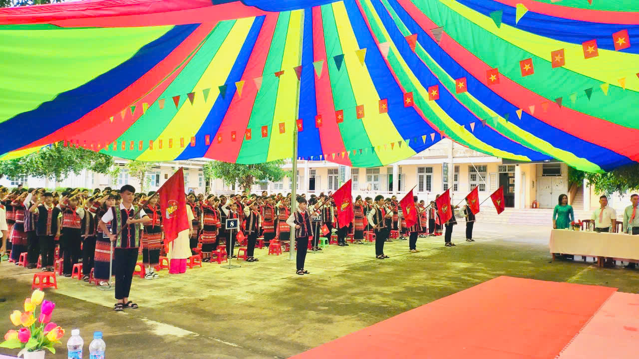 Ảnh. Nghi thức chào cờ Trường PTDT bán trú THCS Canh Liên