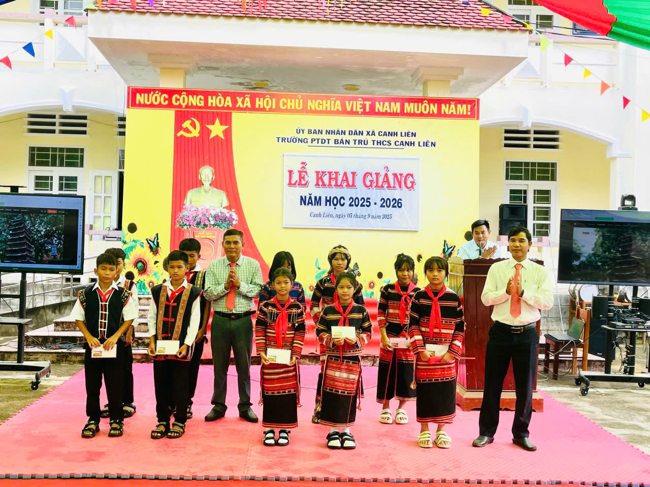 Dù điều kiện còn nhiều khó khăn, các trường học như trường Mẫu giáo, trường Tiểu học, Trường PTDT bán trú THCS Canh Liên. Vẫn tổ chức lễ khai giảng trang trọng, ngắn gọn nhưng đủ đầy ý nghĩa, tạo khí thế vui tươi cho thầy cô và học sinh bước vào năm học mới.