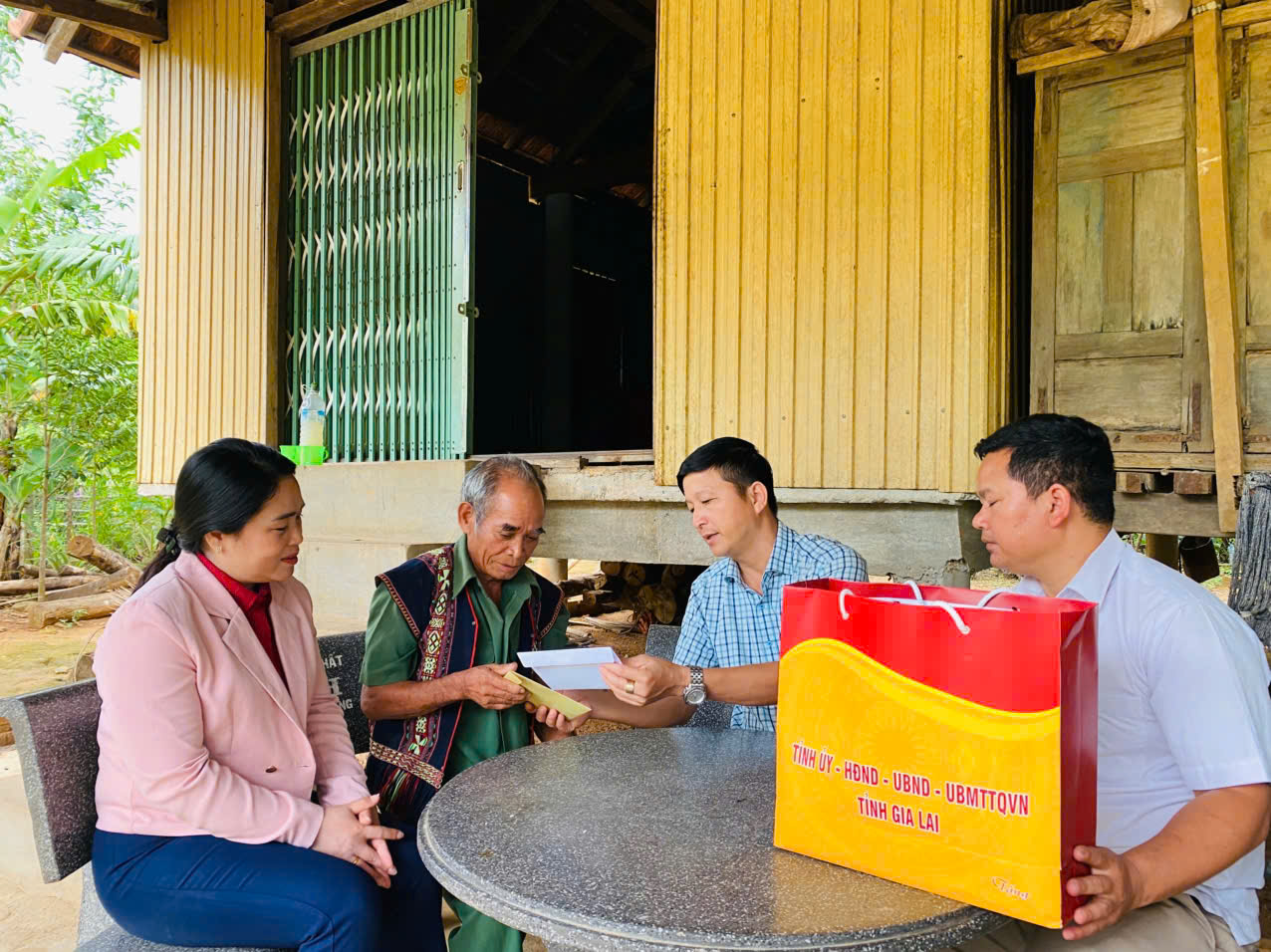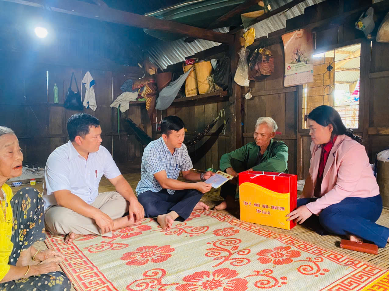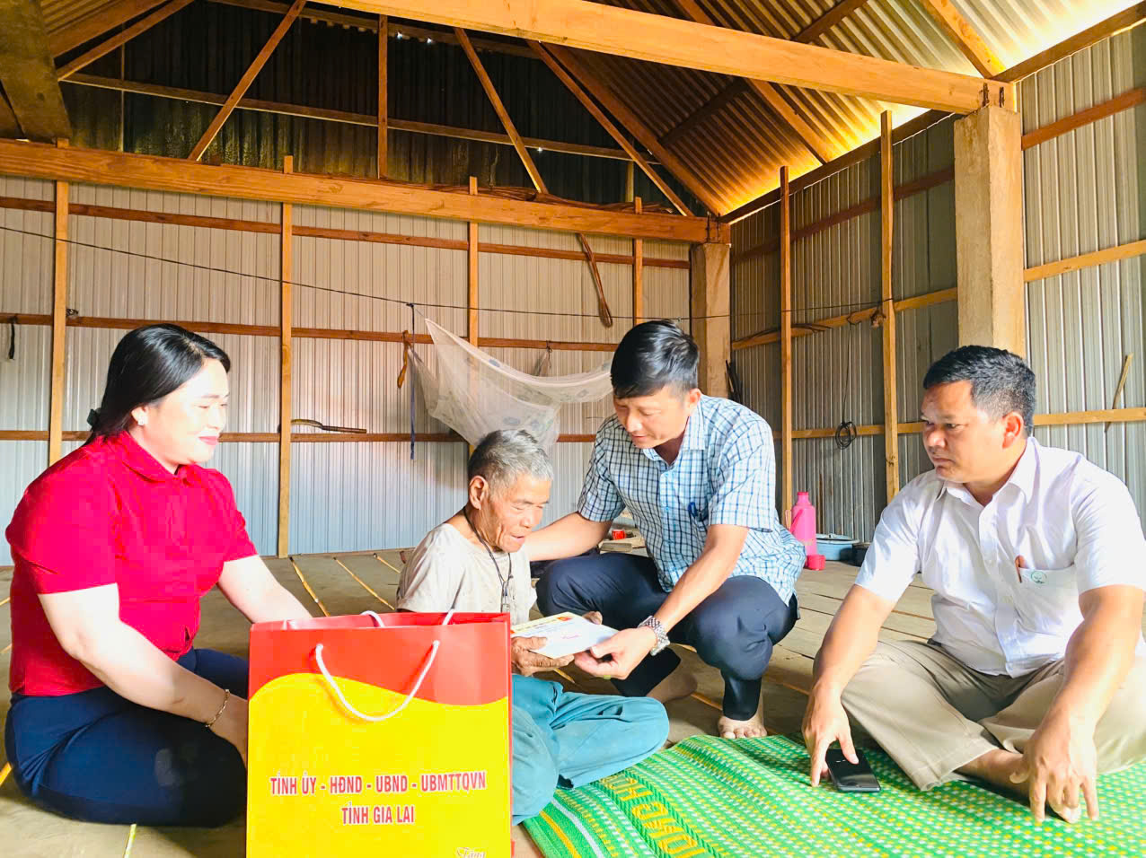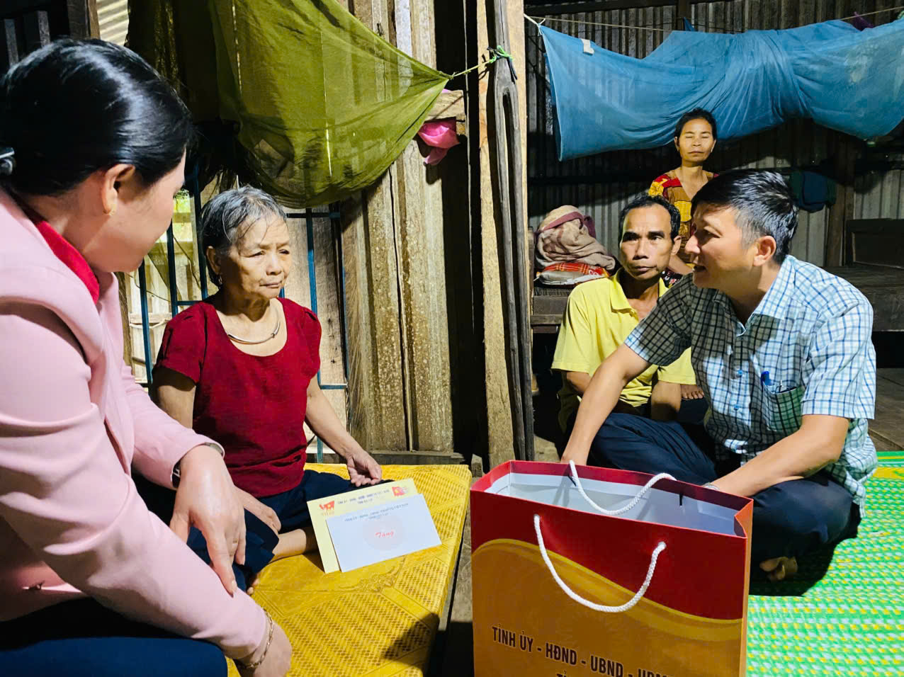 Lãnh đạo xã thăm tặng quà cụ Đinh Thị Năm tại làng Kon Lót, xã Canh Liên.